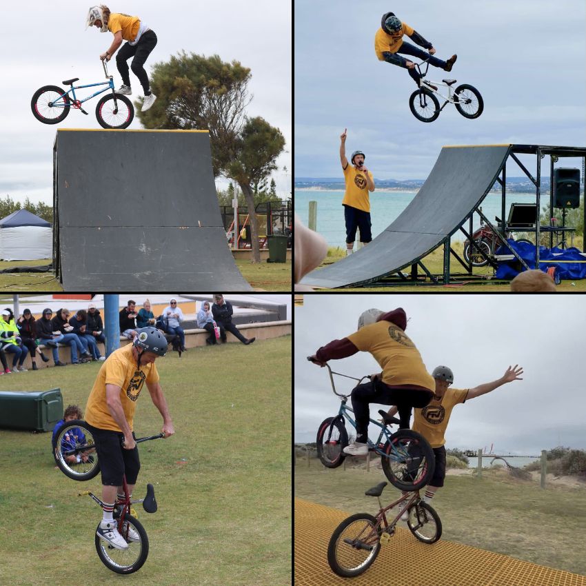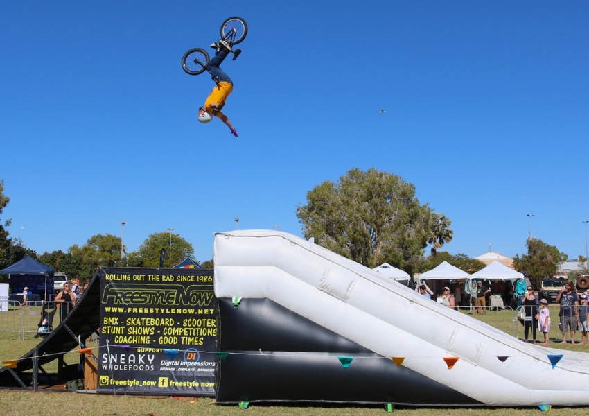 Freestyle Now rolled out the rad at the Geraldton Sunshine Festival, battling 50 km/h winds with BMX stunts, quarterpipe tricks, flatland riding, and crowd-pleasing action
