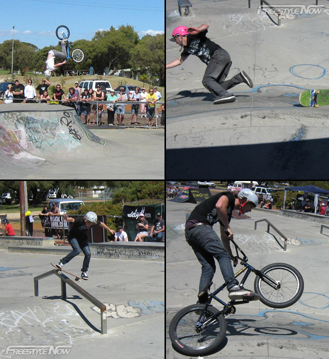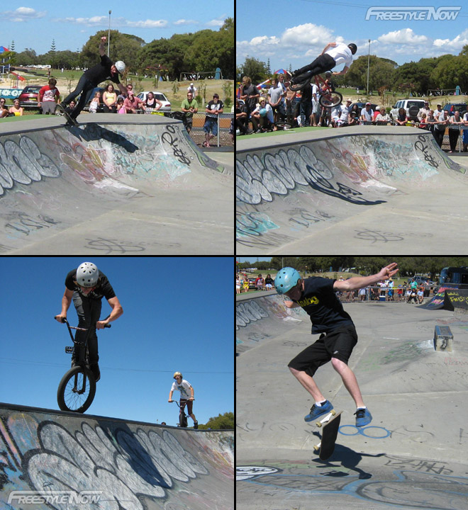 Sunday at it was time for stacks and stunts. The Busselton Park doesn’t have much flow so the Freestyle Now ramps were defiantly put to good use and made for a vast improvement. With competitors signed up and the spectators waiting to see some stacks and stunts, the action commenced. It was great to see so many people out in support of the event and the day came to an end with local band The Beauty of Slaughter ripping the place apart with some Deathcore/grindcore masterpieces. Big props out to Cas and Joel at Southern Rip along with the T shirt Shack, Stowaway distribution and Beyond skate .