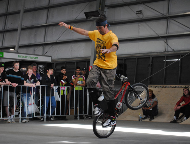 DownUnderGround national bmx flatland contest finals took place in Melbourne one the 21st of August at the Aus bike expo. The contest was a great event with riders traveling from all over Australia and some from around the world. Freestyle Now squad members Paul Chamberlain and Shaun Jarvis were at the contest riding in the pro and advanced classes respectively. The two riders rode really well throughout the competition with both riders making it through to the finals in their classes. Paul took out the second place but he won the year end title for the series. Shaun qualified in 2nd place but felt the pressure a bit much and missed a few tricks in his final runs, taking out the 4th place and ended up with a 2nd in the 2011 contest series. Congratulation to both riders for all their great efforts in progressing with their riding.