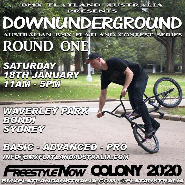 Round one of DownUnderGround is set to take place in Sydney on the 18th January. The national bmx flatland competition is now into its 6th series and Freestyle now is once again supporting the contest series. With support also coming from Colony and 2020 bmx mag this competition in Sydney will be off the hook. Freestyle Now squad members Paul Chamberlain , Shaun Jarvis and Jason Parker will be in attendance to compete against Australia’s top flatland bmx riders. The contest will again take place near the iconic Bondi beach at Waverley Park, Bondi Junction, Sydney. Make sure you get along and throw down some radness.