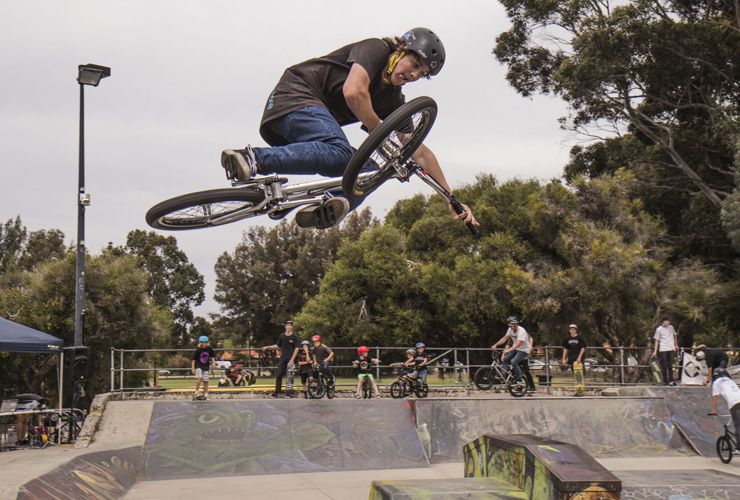Jack came out to one of the Freestyle Now bmx stunt shows at the Perth Arena recently to have a roll and meet some of the Freestyle Now squad members – Photo Duncan Barnes