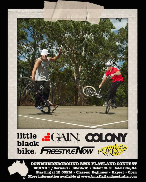 DownUnderGround is now into series 8 and Freestyle Now has proudly supported the series from the start. Round 1 will take place at the Belair National Park in Adelaide on the 30th April. This will be the first time that DownUnderGround had taken place in Adelaide. DownUnderGround is presented by BMX Flatland Australia and is supported by Freestyle Now, Colony bmx, Little Black Bike, Nothings Wrong and Gain protection. Many competitors will converge from around Australia and the globe to attend Round 1 the start of series 8. Open to all bmx riders who would like to compete in either beginner, expert and open.