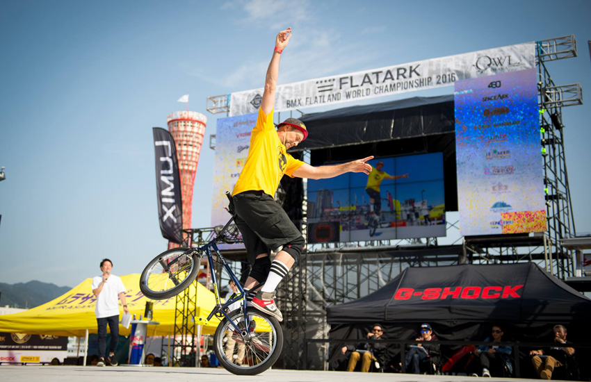 Flatark is the biggest flatland contest in the world. Held in Kobe Japan, riders from all over the world travel to be a part of the event. Riders come and enjoy the event others come to compete. Freestyle Now squad members Shaun Jarvis and Paul Chamberlain travelled to Japan to experience Flatark once again. This is the third time they have gone. Shaun competed once again in the expert class where he place 19th in a class of 42 riders. 2016 is the 35th year Shaun has been riding bmx and it looks like he is not slowing down. Shaun sent us a few words about the trip so please read on.