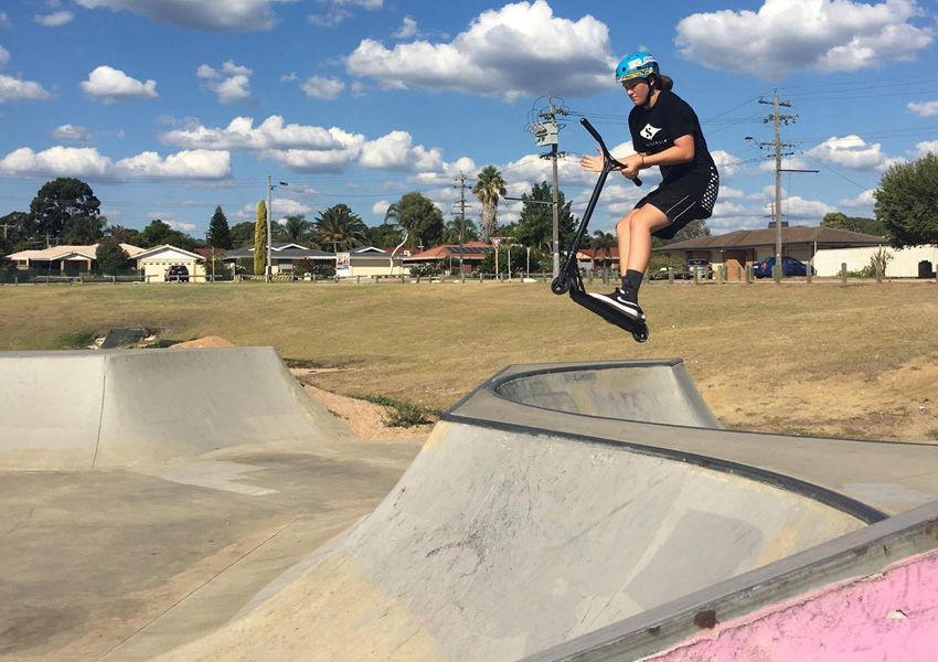 Freestyle Now would like to welcome to the squad new recruits scooter rider Karee Furneyvall. Karee is the first female to join the Freestyle Now squad in its 30 years history. Karee has been scooter riding for a while now and its only in the last year that she has really been getting out to comps and getting seen. When we first met Karee we knew straight away that she would make a great addition to our squad. Karee is polite and well mannered and caries herself well when around others which is one of the most important things when gaining sponsorship. Karee also had some rad scooter skills as well. Karee has also recently got sponsored by Sacrifice Scooters as well. Back in April Karee attend the Australian Scooter titles in Melbourne where she took out a 6th place. It is great that more females are getting into action sports and we are hoping that Karee will help to show that girls can participate at skateparks and roll out the rad. Please check out Karee Furneyvall’s profile for more information on our newest recruit squad member.