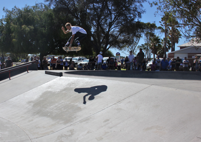 The Action Sports Games is back. After two years of a hiatus it has returned to a new home in Bunbury. It was on a smaller scale to what it was in previous years but this will give it room to grow just like it did when it first came upon us 6 years ago. The skatepark competition took place on the Saturday with the wake boarding competition taking place on the Sunday. In amongst all of that were some freestyle moto shows. All up Bunbury has some of the best action sports taking place right in the heart of the city. The Action Sports Games skatepark competition was also round 2 of the Freestyle Now Western Australian skatepark series. This scooter, skateboard and bmx skatepark competition had $2400 prize money up for grabs and a stack of prizes from Vokul scooters and Minority clothing. The turnout was good with over 60 competitors and hundreds of spectators.