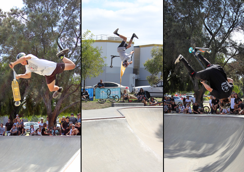 The Bunbury Action Sports Games was another rad competition. One of the biggest scooter, skateboard and bmx skatepark competition held in Western Australia it had an awesome turn out. With a prize purse of $2500 up for grabs, first place winning $500 in the open class and $3000 worth of prizes plenty of competitors were keen. With an early 9:30am start for the beginners class it was going to be a long day. The beginner class had some great riding and good number of competitors. The bmx class had 11 competitors which was great to see. Roary O’Donnell took the win in the scooter beginner class and also took home a brand new complete scooter thanks to Grit scooters.