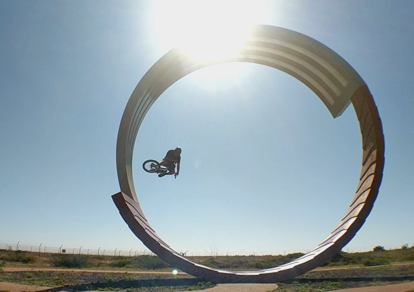 Josh boosting a tabletop on a full pipe that was never meant to be ridden.
