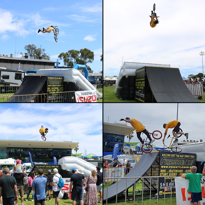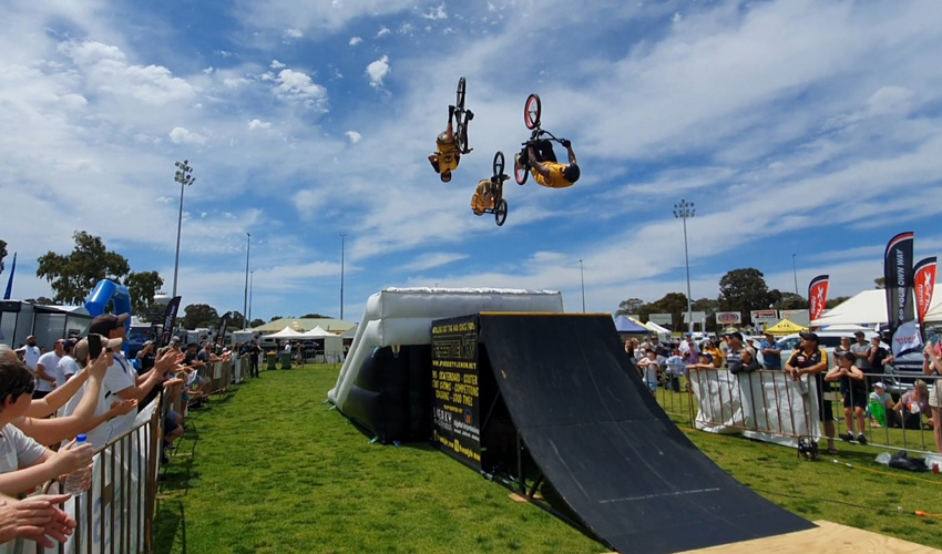 Freestyle Now came to roll out the rad and entertain the masses at the the 2021 Mandurah Boat, Caravan, 4wd and camping show and that is what we achieved. When it comes to entertainment Freestyle Now definitely has you covered with a high entertainment value bmx stunt show. Make sure you check out our coming events page to see where the next Freestyle Now stunt shows will be going down. If you would like this type of great entertainment at your next event please get in contact with Freestyle Now with your requirements. A full list of all the stunt shows that Freestyle Now has ever done over the past 35 years can be found on our past stunt show page.