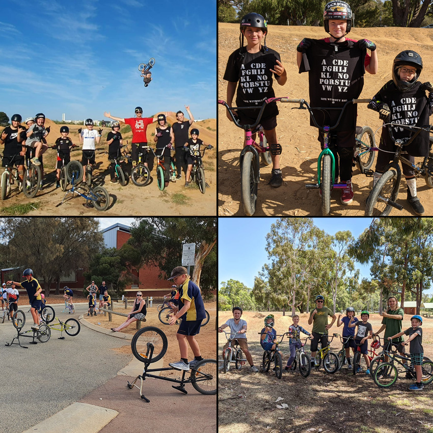 BMX pump track and jumping sessions offer all of the same service as skatepark sessions just on a different terrain. Clockwise from top left. – Getting the participants together for a fun learning time. – Jam sessions can also take place to win prizes. – Any pump track or bmx jumps are ideal for a session to take place. – Offering different challenges for participants to do creates important interaction.