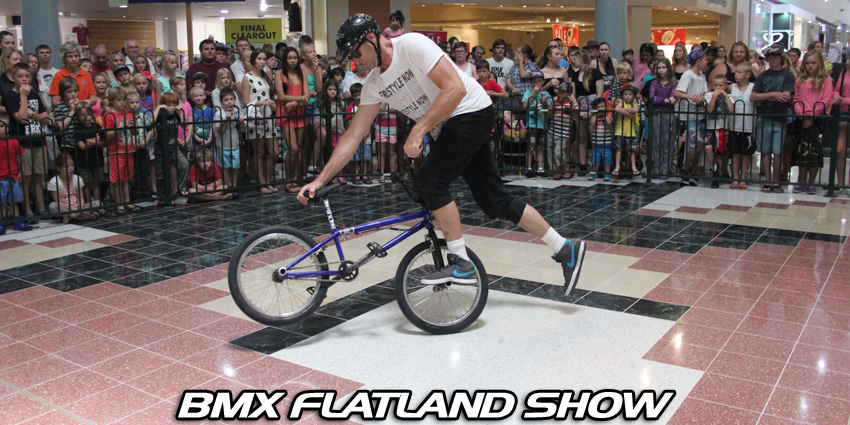 The Freestyle Now BMX flatland stunt show consists of BMX flatland stunts. This show has 3 professional BMX flatland performers that perform a variety of BMX stunts on flat ground and do not use any ramps. BMX Flatland is one of the purest forms of BMX stunt riding as riders only use their bikes to perform stunts in many different ways. The BMX flatland performers ride their bikes backwards or forwards on one wheel, in circles and in spins sometimes with the bike in an upright position and sometimes in an upside down position. The style of riding can often leave the spectators bewildered on how a person can ride a bike in such a way. The Freestyle Now BMX flatland stunt show is generally 15 minutes in duration but can be adapted to suit your event. The flatland show is easily set up in full in any location and on any hard flat clean level surface only including asphalt, stages, pavement or cement with an area required of approximately 10 metres x 10 metres with the opportunity to discuss smaller sizes if needed. As no ramps are involved set up is very quick. This style of show is great for small venues or tight areas. The show set up is low impact so it is also suited to venues where a quick set up and pack down is required. The show has been very well received at shopping centres, stage performances, fairs, agricultural shows and festivals. Please contact Freestyle Now if you require more information.