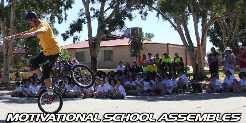 Freestyle Now can offer your school a professional motivational presentation that can cater for all school ages. A Freestyle Now school presentation is a mix of awesome BMX, scooter and skateboard skills with positive messages and motivational speeches throughout the presentation to keep the students captivated and by doing this it opens up their minds to the presentation which helps for them to absorb the messages we promote. The physical presence of the Freestyle Now stunt squad jumping through the air with crazy stunts and spinning around in every which way on the ground will captivate not only the students but the teachers as well. We harness the crowds enthusiasm and create a presentation that shows how if you can have a passion for something you are able to achieve any goal you desire. More information can be found on our school assembles web page here.