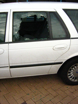 On Saturday night Shaun Jarvis took the visitors out for the night but instead of fun times Shaun’s car got mobbed by a pack of about 15 hoodlums. The car got pelted with bottles and as a result the roof, bonnet, and side of the car got dents all over it as well as one of the back windows got smashed out from contact with a bottle. Eric was lucky he didn’t get injured as he was sitting next to the window at the time.