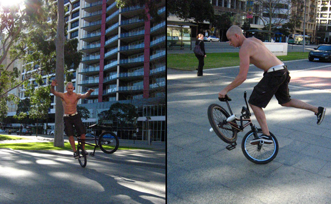 Chris and Greg from Rebel Yell bmx magazine have been over for the last week to document some riders and the riding scene and also to hang out and have a blast. Canadian flatland rider Eric Effinger arrived in Perth last Wednesday and is staying for a few months. Eric placed third in the DownUnderGround national flatland competition series. On the first day upon arriving Eric got into with a photo shoot with Rebel Yell bmx magazine.